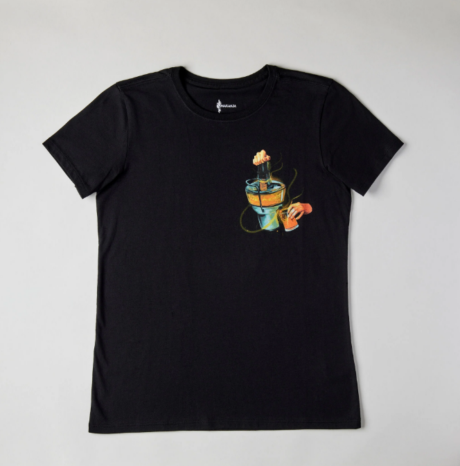 Esta camiseta negra para mujer es perfecta para expresar tu estilo personal. Confeccionada en 100 % algodón de origen peruano y con una imagen de diseño impresa en la parte delantera, esta camiseta duradera y llamativa sin duda llamará la atención y se convertirá en una prenda básica, cómoda y duradera.