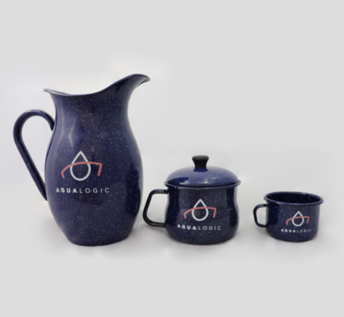 Hermoso set de accesorios para tus bebidas, fabricado en acero al carbono y revestido con una cubierta vítrea en color (interior/exterior). Incluye: Jarra - Mini Jarra - Mug.